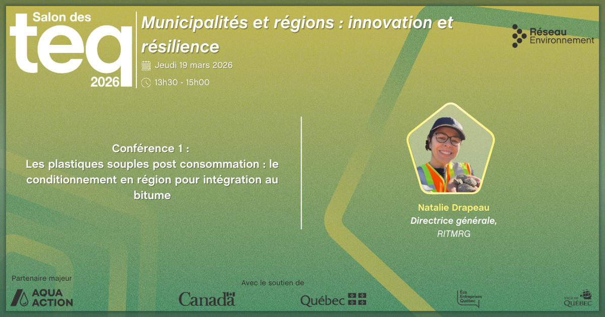 Les emballages plastiques tels les sacs, la pellicule, les poches plastiques sont des matières ayant peu ou pas de débouchés au Québec. Et pourtant, leur présence est omniprésente dans notre quotidien et environnement. Leur conditionnement en Gaspésie passe par un broyage et une densification qui produisent une pâte que l’on granule pour obtenir des flocons. Ceux-ci peuvent être introduits dans la préparation du bitume ou dans la fabrication de mobilier urbain. La RITMRG présente son parcours des 3 dernières années sur ce dossier, les données scientifiques soutenant la proposition de réinsertion dans le bitume notamment, les écueils vécus et les constats après 6 mois de production.